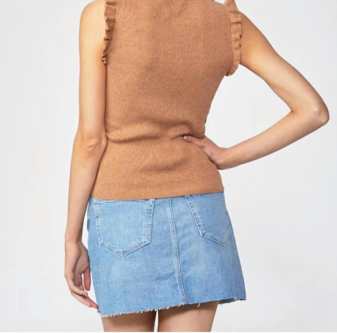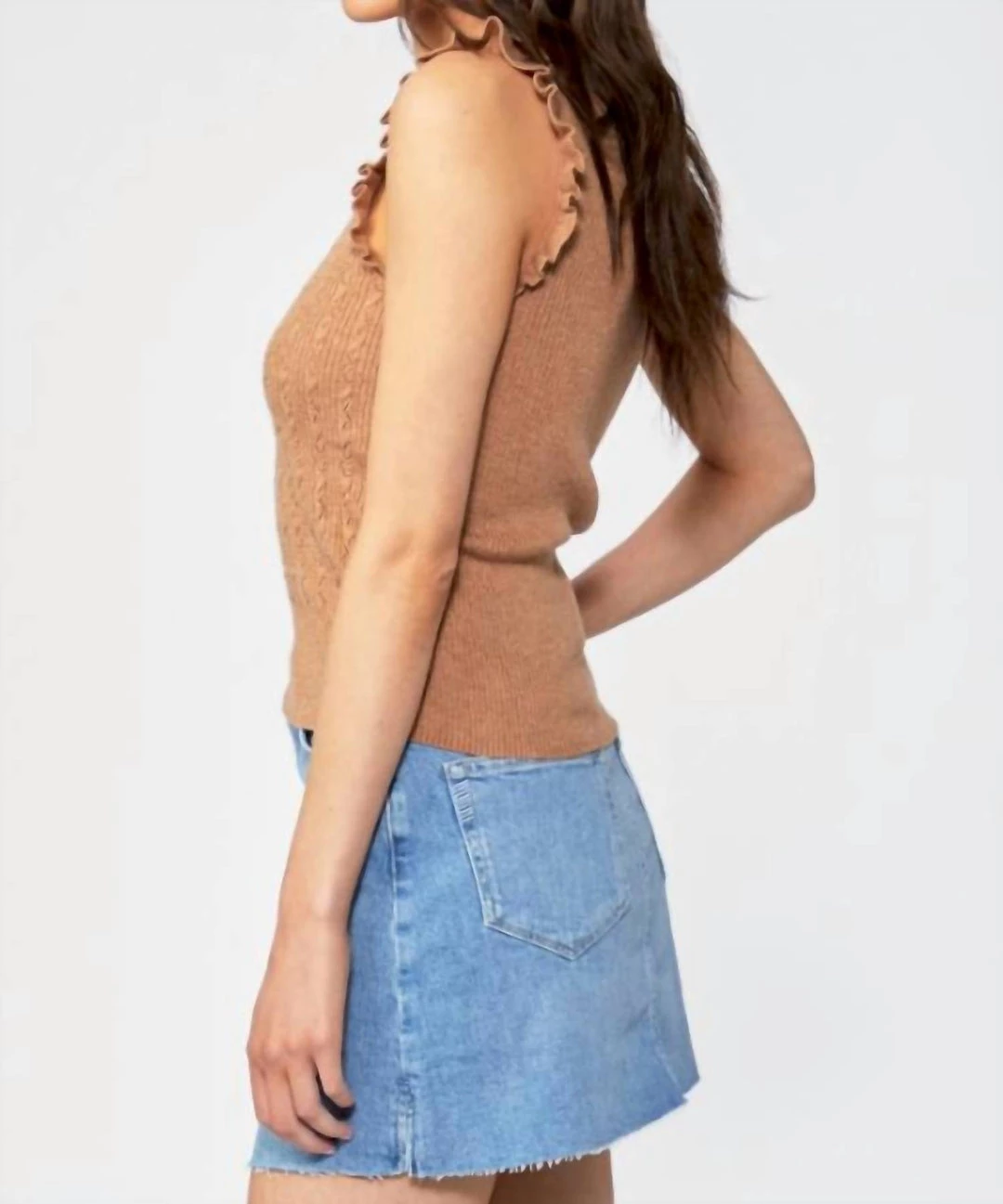 Crafted from a supremely soft cotton/silk blend in dark camel, the Gardenia Sweater is designed with a ruffle trim at the shoulders and a beautiful stitch detail. This pretty little top looks perfect with straight leg jeans, knit trousers or black skinnies.70% Cotton, 20% Nylon,10% SilkModel is 175cm/5’9″ and is a size XS