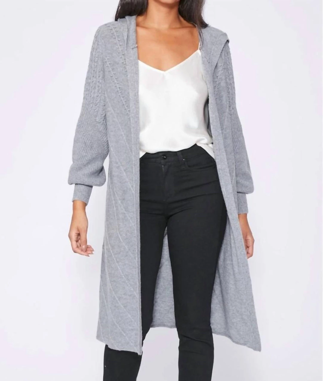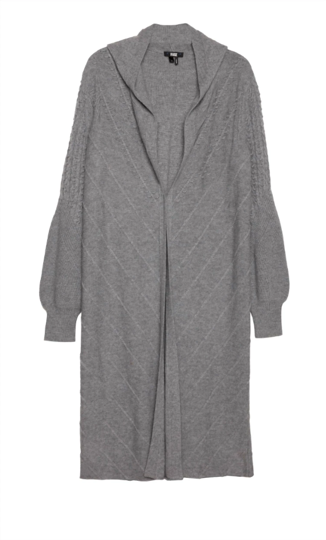 This gorgeous style is designed with beautiful stitch detailing, a pouf sleeve and a hood for an effortlessly cool vibe. Crafted from a super soft wool blend in heather grey, throw this beauty on over any outfit for an instantly chic look. 70% Wool, 30% Nylon